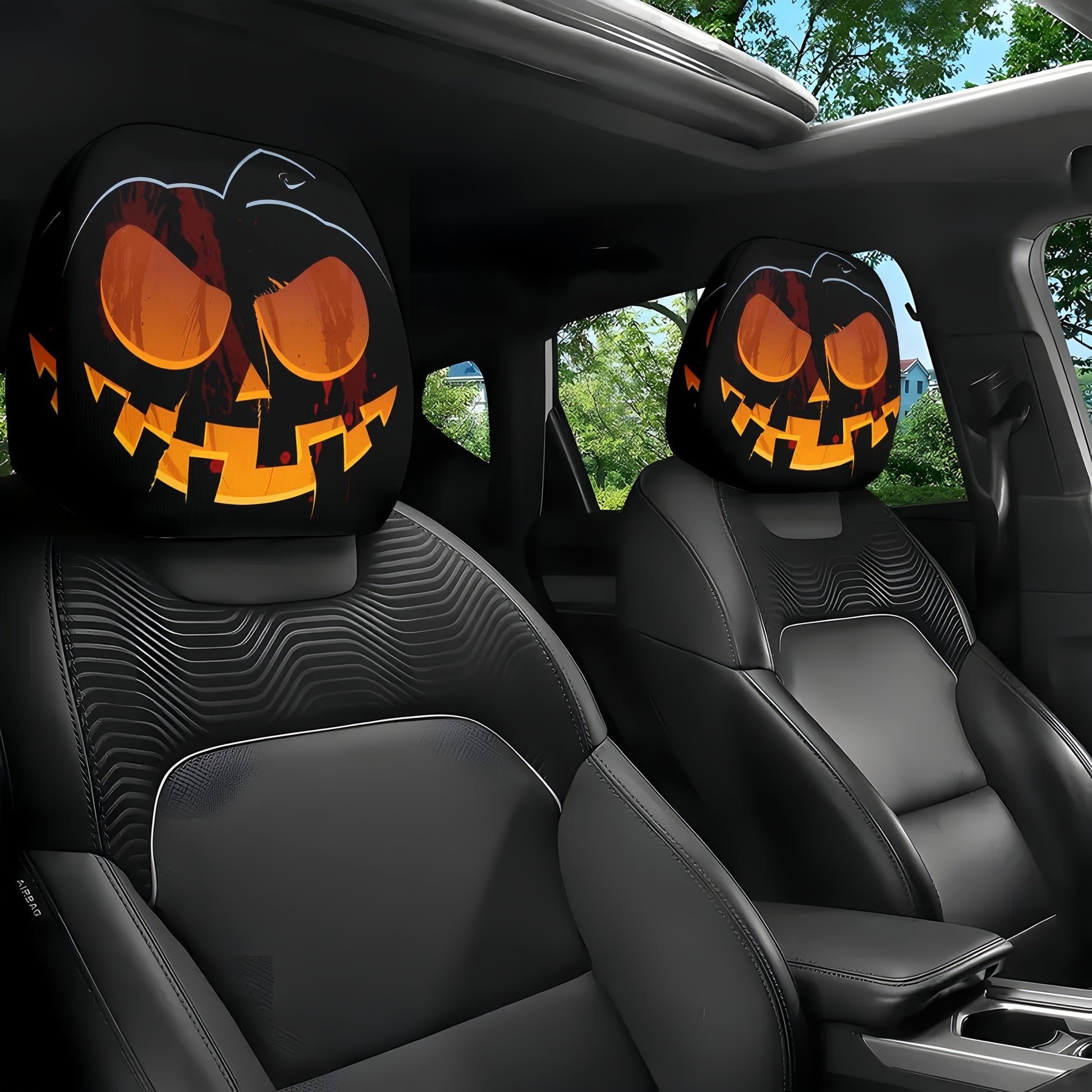 2PCS Funny Big-Eyed Cartoon Car Seat Headrest Covers – Universal Fit, Holiday Fun!