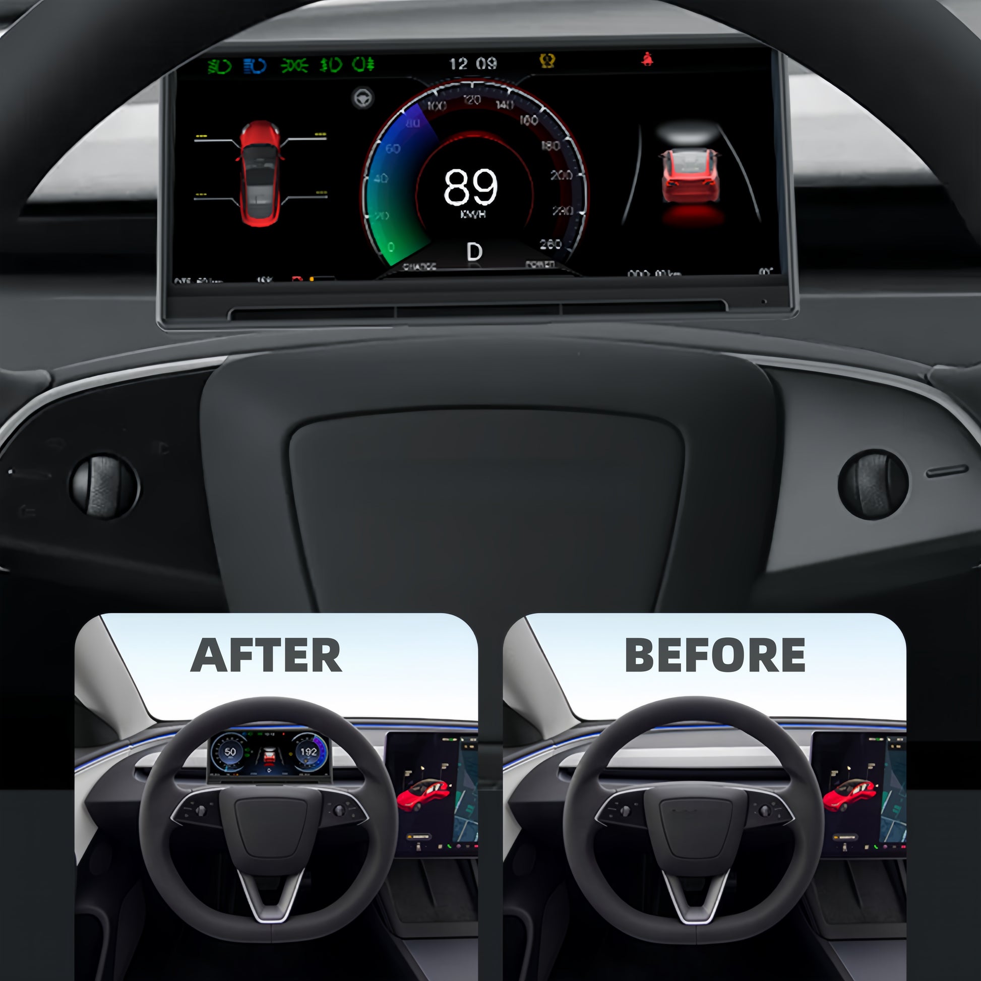 Bring advanced tech to your 2025 Model Y Juniper with this sleek 9-inch HD instrument cluster. Designed to keep critical driving stats, navigation, and media right in front of you, this upgrade eliminates the constant need to glance at the center display.